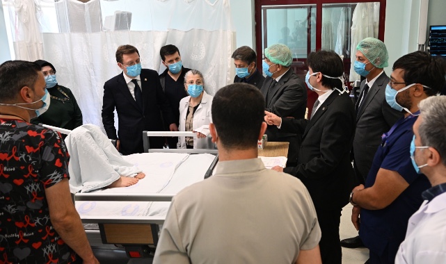 Kahramanmaraş Sütçü İmam Üniversitesi Rektörü Prof. Dr. İbrahim Taner Okumuş ve hastane yönetimi eşliğinde tedavi altındaki öğrencilerle bir araya gelen Yerebakan, yaralıların sağlık durumuna ilişkin yetkililerden bilgi aldı.