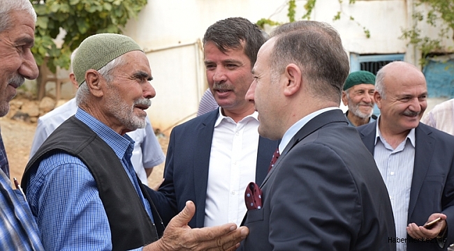 sakinleriyle sohbet eden, Türkoğlu İlçe Kaymakamı Gürbüz Saltaş ve Belediye