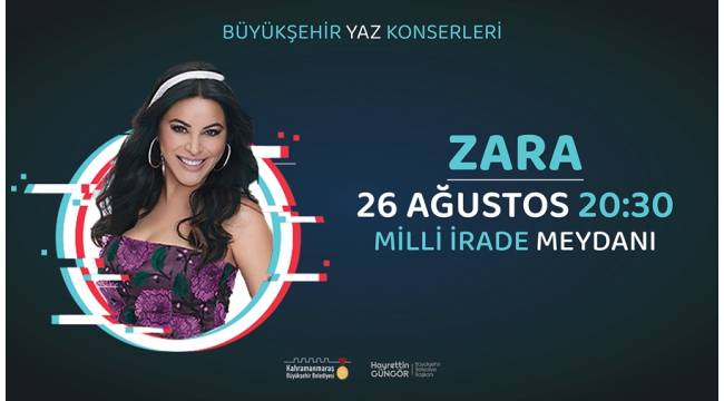 Büyükşehir Belediyesi Yaz Konserleri kapsamında 26 Ağustos Cuma günü saat 20.30’da Türk Halk Müziği Sanatçısı Zara, Milli İrade Meydanı’nda Kahramanmaraşlılarla bir araya gelecek.